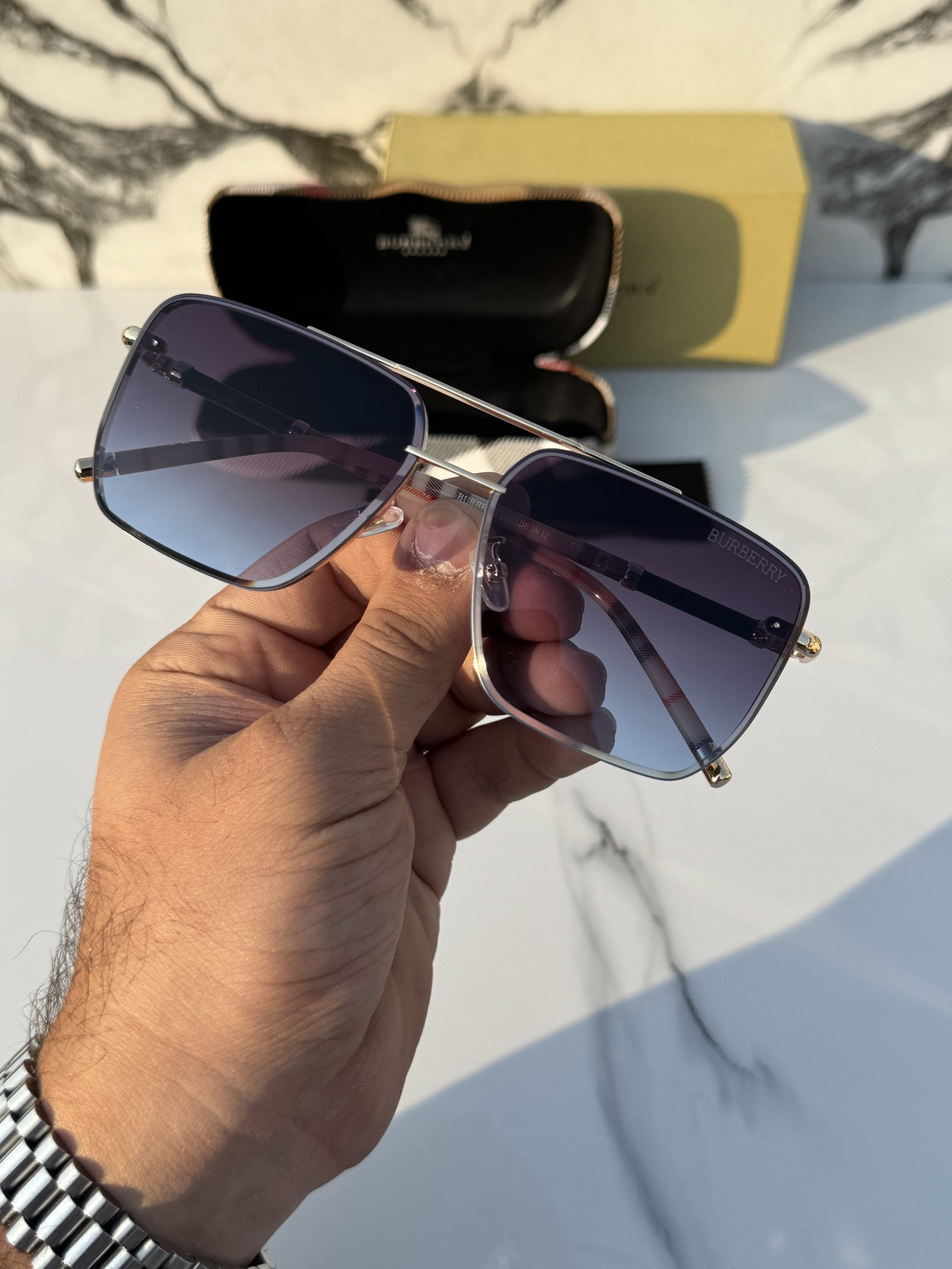 Branded Sunglasses _23066_gold_blueshaded(With Original Kit)